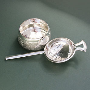 Silver tea strainer and bowl